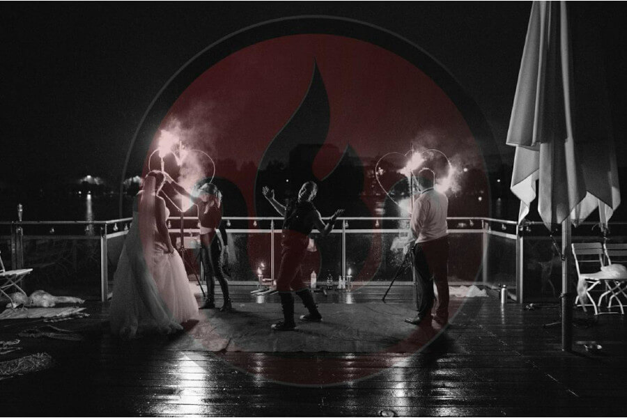 Fire and Feeling ist nach Ihnen das Highlight Ihres Abends. Erleuchten Sie die Nacht mit Fire and Feeling, entzünden Sie symbolisch die Ihre brennenden Herzen und machen Sie den Moment an Ihrem Hochzeitstag unvergesslich. Erleben Sie die Feuershow in effektgeladener oder eleganter Variante und erleben durch unsere Künstler eine beeindruckende Performance. Sie können Ihr Highlight ganz individuell mit uns abstimmen und die Show gestalten. (ebenso mit einem Feuerwerk als Finale)